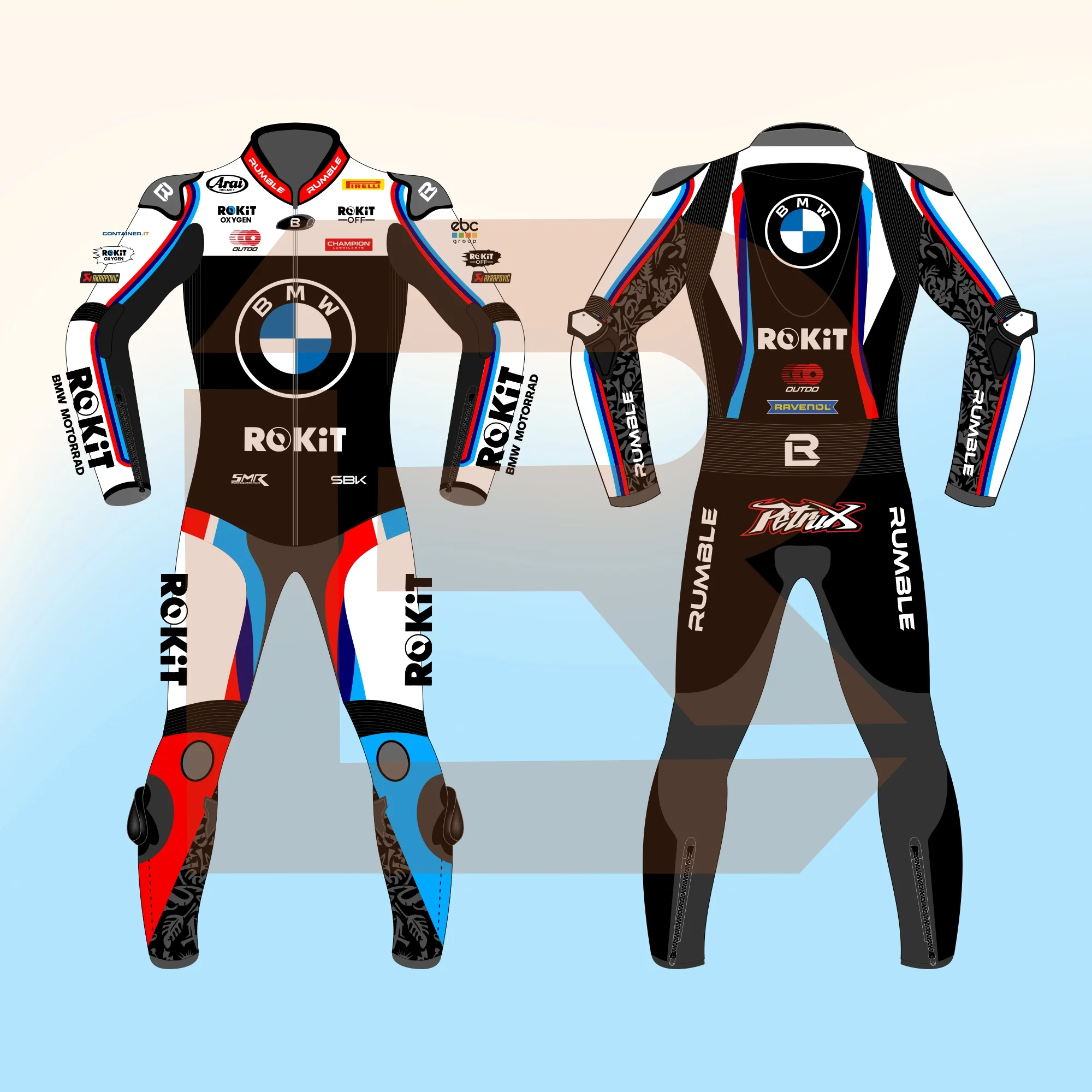 The Danilo Petrucci ROKiT BMW Motorrad WorldSBK 2026 Suit is built for riders who want powerful race presence with serious protection. Crafted from premium 1.2–1.3 mm cowhide leather or lightweight 0.8–0.9 mm kangaroo leather, it delivers strong abrasion resistance with a track-focused fit. Schoeller Kevlar stretch panels at the crotch, under sleeves, and behind the calves allow smooth body movement in aggressive riding positions. Carbon sliders at the knees, elbows, and shoulders reinforce high-impact zones for added security. CE-approved removable PU armor at the shoulders, elbows, knees, hips, and back provides dependable protection. Double and triple safety stitching enhances structural strength. Custom sizing and perforation options available. Buy now and ride with WorldSBK-level confidence.